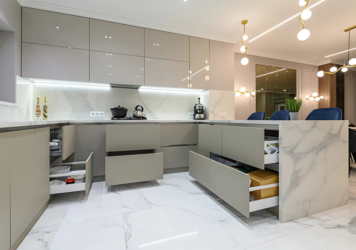 Experience the next Modern Kitchen Design, where elegant aesthetics blend seamlessly with intelligent layout and efficient functionality.